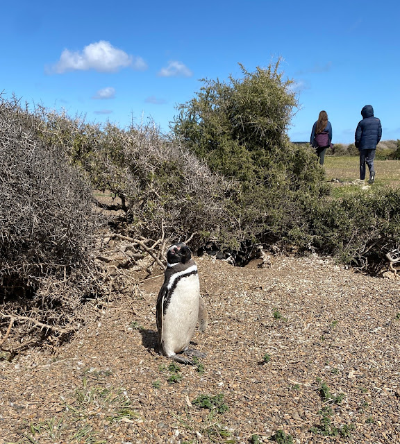 Under every single bush and sometimes just out in the open is a penguin burrow where they are watching over their eggs.